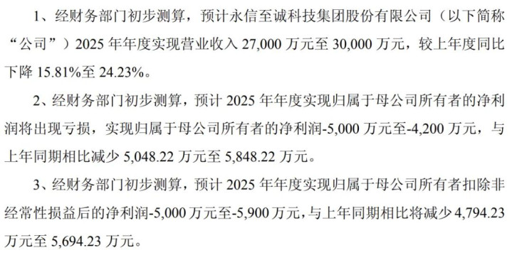 永信至诚:亏损 5000 万至 4200 万。