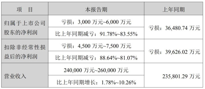 绿盟科技:亏损 6000 万至 3000 万;营收 24 亿至 26 亿。
