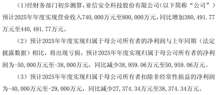亚信安全:亏损 5 亿至 3.8 亿。