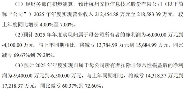 安恒信息:亏损 6000 万至 4100 万。