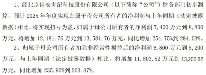 信安世纪:净利润 8800 万至 7400 万。