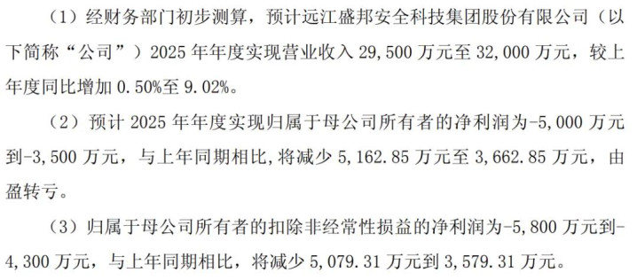 盛邦安全:亏损 5000 万至 3500 万。