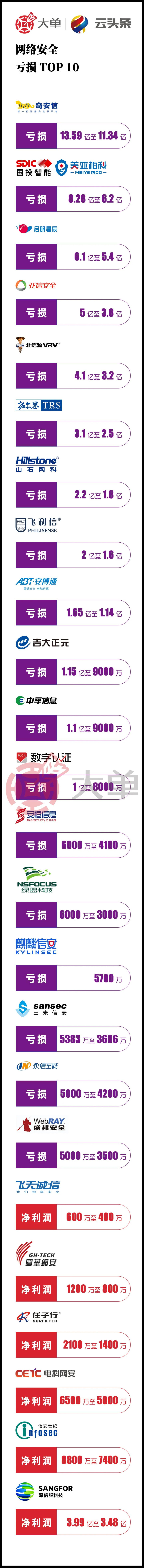 启明星辰:亏损 6.1 亿至 5.4 亿。