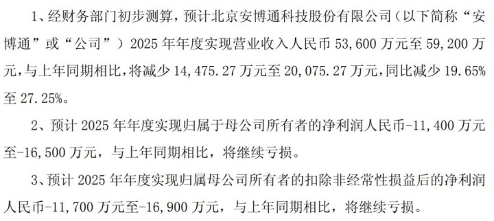 安博通:亏损 1.65 亿至 1.14 亿。